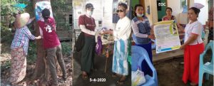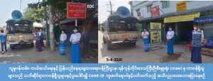 (၅-၄-၂၀၂၀) ရက်နေ့တွင် လူမှုဝန်ထမ်း၊ ကယ်ဆယ်ရေးနှင့် ပြန်လည်နေရာချထားရေးဝန်ကြီးဌာန၊ ဘေးအန္တရာယ်ဆိုင်ရာစီမံခန့်ခွဲမှုဦးစီးဌာန၊ ရန်ကုန်တိုင်းဒေသကြီးဦးစီးမှူးရုံးနှင့် တိုင်းဒေသကြီးလူမှု ဝန်ထမ်းဦးစီးဌာနမှူးရုံးတို့ပူးပေါင်း၍ ရန်ကုန်တောင်ပိုင်းခရိုင်၊ ဆိပ်ကြီးခနောင်တိုမြို့နယ်၊ ဆိပ်ကြီး အရှေ့ရပ်ကွက်၊ ဆိပ်ကြီးအနောက်ရပ် ကွက်၊ ခနောင်တိုအရှေ့ရပ်ကွက်၊ ခနောင်တိုအနောက်ရပ်ကွက်၊ သခင်ဘသောင်းရပ်ကွက်၊ ဦးဘိုထွန်းရပ်ကွက်၊ ပန်းပင်ချောင်းရပ်ကွက်၊ ချောင်းပိုင်းလေးရပ်ကွက်များ တွင်၎င်း၊ ရန်ကုန်အရှေ့ပိုင်းခရိုင်၊ မြောက်ဥက္ကလာပမြို့နယ်၊ (င/ဆ/ဇ/ဈ/ည/ဌ/ဝေဘါဂီ) ရပ်ကွက်များ တွင်၎င်း၊ MyanmarNGONetworkCovid19ActionGroupမှ ရန်ကုန်တောင်ပိုင်းခရိုင်၊ ဒလမြို့နယ်၊ ဗိုလ်ရန်ပြေရပ်ကွက်၊ အောင်မင်္ဂလာရပ်ကွက်၊ စက်မြေရပ်ကွက်၊ ကမာသွယ်ရပ်ကွက်၊ ကမာကဆစ် ရပ်ကွက်များတွင် အဖွဲ့ဝင်(၁၁)ဦးဖြင့်၎င်း Covid-19 အသက်ရှူလမ်းကြောင်းဆိုင်ရာရောဂါနှင့်ပတ်သက်၍ အများ ပြည်သူများ သိရှိလိုက်နာရန်အချက်များအား ကွင်းဆင်း၍ အသိပညာပေးပန်ကြားချက်များ၊ ကျန်းမာရေး နှင့် အားကစားဝန်ကြီးဌာနမှထုတ်ပြန်ထားသော လက်ကမ်းစာစောင်များအား အရာထမ်း၊ အမှုထမ်းများမှ ရပ်ကွက်များအတွင်း ကြောငြာခြင်း၊ ဖြန့်ဝေခြင်းစသည့် ပြည်သူအသိပညာပေးလုပ်ငန်း များအား သက်ဆိုင်ရာ ကျန်းမာရေးဌာန၊ မီးသတ်ဦးစီးဌာန၊ အထွေထွေအုပ်ချုပ်ရေးဦးစီးဌာနတို့မှ တာဝန်ရှိသူများ နှင့်အတူ ပြုလုပ်ခဲ့ကြောင်း သိရှိရပါသည်။