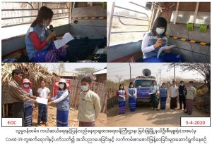 လူမှုဝန်ထမ်း၊ ကယ်ဆယ်ရေးနှင့်ပြန်လည်နေရာချထားရေးဝန်ကြီးဌာန၊ ဘေးအန္တရာယ်ဆိုင်ရာစီမံခန့်ခွဲမှုဉီးစီးဌာန၊ မြင်းခြံမြို့နယ်ဦးစီးမှူးရုံးမှ တာဝန်ရှိသူများသည် ခရိုင်ပြည်သူ့ကျန်းမာရေးဦးစီးဌာန၊ ခရိုင်မီးသတ်ဦးစီးဌာန၊ မြို့နယ်အထွေထွေအုပ်ချုပ်ရေးဦးစီးဌာန၊ အမှတ်(၆)လူငယ် လူမှုကူညီရေးအသင်းမှ တာဝန်ရှိသူများနှင့် ပူးပေါင်း၍(၅-၄-၂၀၂၀) ရက်နေ့ (၀၈း၀၀)နာရီမှ (၁၆း၃၀)နာရီ အချိန်ထိ မြင်းခြံမြို့နယ်အတွင်း ကေျးရွာအုပ်စု(၈)အုပ်စု၊ ကျေးရွာ(၂၀)သို့ လှည့်လည်ပြီး COVID -19 ကူးစက်ရောဂါနှင့်ပတ်သက်သည့် ဆောင်ရန်/ ရှောင်ရန် တို့အား အသိပညာပေးဟောပြောခြင်းနှင့် လက်ကမ်းစာစောင် ဖြန့်ဝေခြင်းများလည်း ဆောင်ရွက်ခဲ့ကြောင်း သတင်းရရှိပါသည်။