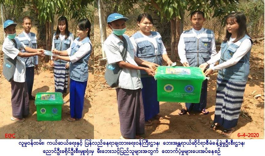 လူမှုဝန်ထမ်း၊ ကယ်ဆယ်ရေးနှင့် ပြန်လည်နေရာချထားရေးဝန်ကြီးဌာန၊ ဘေးအန္တရာယ်ဆိုင်ရာစီမံခန့်ခွဲမှုဦးစီး ဌာန၊ ညောင်ဦးခရိုင်ဦးစီးမှူးရုံးမှ တာဝန်ရှိသူများသည် (၆.၄.၂၀၂၀) ရက်နေ့၊ (၀၀:၂၅)နာရီအချိန်တွင် ညောင်ဦးမြို့၊ စပါးသင်ကျေးရွာ၌ ဖြစ်ပွားခဲ့သော မီးဘေးကြောင့် ဘေးသင့်အိမ်ခြေ (၁) လုံး၊ အိမ်ထောင်စု (၁) စုမှ လူဦးရေ (၄) ဦးအတွက် ဆန်ရိက္ခာ (၇) ရက်စာ (၈၄၀ဝ/-) အိမ်ဆောက်ပစ္စည်းဖိုး (၄၀,၀၀ဝ/-) စုစုပေါင်း ကယ်ဆယ်ရေး ရန်ပုံငွေ (၄၈,၄၀ဝ/-) နှင့် (၃၅,၀၈၁) တန်ဖိုးရှိ ကယ်ဆယ်ရေးပစ္စည်း (၁၇) မျိုး (လေးထောင့်ပလတ်စတစ်ပုံးနှင့် စက္ကူပုံးအပါ) (၁) အိမ်ထောင်စာကို ယနေ့ (၁၁:၃၀) နာရီအချိန်တွင် မီးဘေးသင့်ပြည်သူ၏ လက်ဝယ်အရောက် ထောက်ပံ့ပေးအပ်ခဲ့ပါကြောင်း သတင်းရရှိပါသည်။
