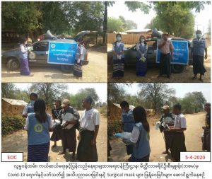 လူမှုဝန်ထမ်း၊ ကယ်ဆယ်ရေးနှင့်ပြန်လည်နေရာချထားရေးဝန်ကြီးဌာန၊ ဘေးအန္တရာယ်ဆိုင်ရာစီမံခန့်ခွဲမှုဦးစီးဌာန၊ မိတ္ထီလာခရိုင်ဦးစီးမှူးရုံးမှ တာဝန်ရှိသူများသည် ဧပြီလ(၅) ရက်နေ့တွင် မိတ္ထီလာမြို့နယ်အတွင်းရှိ ကွက်ငယ်အုပ်စု၊ ဝါးရုံအုပ်စု၊ ကုက္ကိုကုန်းအုပ်စု၊ လှည်းပွဲအုပ်စုရှိကျေးရွာ(၂၃)ရွာအတွင်းရှိ ပြည်သူများအား Covid 19နှင့်ပတ်သက်၍ အသိပညာပေးနှိုးဆော်မှုများ၊ Surgical mask များဖြန့်ဝေခဲ့ကြောင်း သတင်းရရှိပါသည်။
