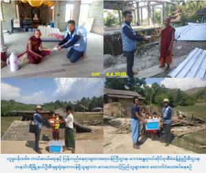 လူမှုဝန်ထမ်း၊ ကယ်ဆယ်ရေးနှင့် ပြန်လည်နေရာချထားရေးဝန်ကြီးဌာန၊ ဘေးအန္တရာယ်ဆိုင်ရာစီမံခန့်ခွဲမှုဉီးစီးဌာန၊ တနင်္သာရီမြို့နယ်ဦးစီးမှူးရုံးမှတာဝန်ရှိသူများသည် (၄-၄-၂၀၂၀) ရက်နေ့တွင် တနင်္သာရီမြို့နယ်၊ ဆင်ခြေဖုံးကျေးရွာအုပ်စု၊ မမသောင်အနောက်ကျေးရွာနှင့် ဘန်လောကျေးရွာအုပ်စု၊ သမီးလှအနောက်ကျေးရွာတို့မှ လေပြင်းဘေးကြောင့် ပြိုကျပျက်စီးခဲ့သည့်နေအိမ် (၂) လုံးအတွက် အိမ်ဆောက်ပစ္စည်းဘိုးထောက်ပံ့ငွေ (၂၀၀,၀၀၀/-) ကျပ်၊ ကယ်ဆယ်ရေးပစ္စည်း (၁၆) မျိုး(၂)စုစာ၊ အမိုးပျက်စီးနေအိမ်(၂)လုံးအတွက် အိမ်ဆောက်ပစ္စည်းဘိုးထောက်ပံ့ငွေ (၇၀,၀၀၀/-) ကျပ်၊ အမိုးပျက်စီးဘုန်းကြီးကျောင်း (၂) ကျောင်းအတွက် ကျောင်းဆောက်ပစ္စည်းဘိုးထောက်ပံ့ငွေ (၂၀၀,၀၀၀/-) ကျပ်၊ ဘေးသင့်လူဦးရေ (၁၅) ဦးအတွက် ဆန်ရိက္ခာဘိုးထောက်ပံ့ငွေ (၃၁,၅၀၀/-) ကျပ်၊ စုစုပေါင်းထောက်ပံ့ငွေ (၅၀၁,၅၀၀) ကျပ်အား (၆-၄-၂၀၂၀) ရက်နေ့ (၁၅:၃၀) အချိန်တွင် သွားရောက်ထောက်ပံ့ပေးအပ်ခဲ့ပါကြောင်း သတင်းရရှိပါသည်။