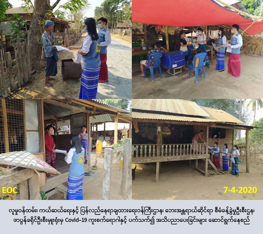 လူမှုဝန်ထမ်း၊ ကယ်ဆယ်ရေးနှင့် ပြန်လည်နေရာချထားရေးဝန်ကြီးဌာန၊ ဘေးအန္တရာယ်ဆိုင်ရာ စီမံခန့်ခွဲမှုဦးစီးဌာန၊ ဖာပွန်ခရိုင်ဦးစီးမှူးရုံးမှ တာဝန်ရှိသူများသည် (၇-၄-၂၀၂၀) ရက်နေ့ ၊ နံနက် (၀၉:၀၀) နာရီမှ (၁၂:ဝ၀) နာရီအချိန်ထိ ဖာပွန်မြို့နယ်၊ အနောက်ဘက်ကမ်းကျေးရွာတွင် အသံချဲ့စက်ဖြင့် COVID-19 ကြိုတင်ကာကွယ်ထိန်းချုပ်ရေးနှင့် ပတ်သတ်သည့် အသိပညာ ပေးခြင်း၊ လက်ကမ်းစာစောင်များဖြန့်ဝေခြင်းများကို ဆောင်ရွက်ခဲ့ကြောင်း သတင်းရရှိပါသည်။