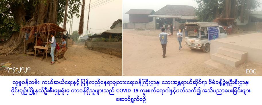 လူမှုဝန်ထမ်း၊ ကယ်ဆယ်ရေးနှင့် ပြန်လည်နေရာချထားရေးဝန်ကြီးဌာန၊ ဘေးအန္တရာယ်ဆိုင်ရာစီမံ ခန့်ခွဲမှုဦးစီးဌာန၊ မိုင်းပျဉ်းမြို့နယ်ဦးစီးမှူးရုံးမှ (၇-၄-၂၀၂၀) ရက်နေ့တွင် မိုင်းပျဉ်းမြို့နယ်၊ ဟိုခိုကျေးရွာနှင့် ဝမ်နောင်ကျေးရွာများအတွင်း COVID-19 ရောဂါ ကူးစက်ပျံ့နှံ့မှုမဖြစ်ပေါ်စေရေးအတွက် သိရှိလိုက်နာဆောင်ရွက်ရမည့် အချက်များအား ကျေးရွာအုပ်ချုပ်ရေးမှူး၊ ရပ်ကျေးစာရေးတို့နှင့် ပူးပေါင်း၍ အသိပညာပေး နှိုးဆော်ခြင်းနှင့် လက်ကမ်းစာစောင်များ ဖြန့်ဝေခြင်းတို့ ဆောင်ရွက်ခဲ့ကြောင်း သတင်းရရှိပါသည်။