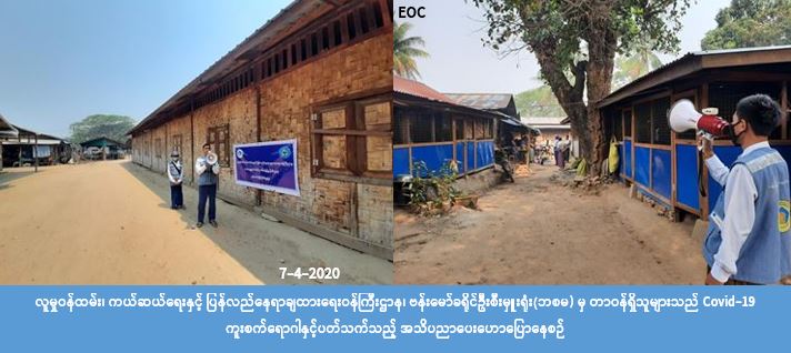 လူမှုဝန်ထမ်း၊ ကယ်ဆယ်ရေးနှင့် ပြန်လည်နေရာချထားရေးဝန်ကြီးဌာန၊ ဘေးအန္တရာယ်ဆိုင် ရာ စီမံခန့်ခွဲမှုဦးစီးဌာန၊ ဗန်းမော်ခရိုင်ဦးစီးမှူးရုံးမှ တာဝန်ရှိသူများသည် (၇-၄-၂၀၂၀) ရက်နေ့ တွင် မိုးမောက်မြို့နယ်၊ RC IDPs စခန်းအတွက် ဆပ်ပြာ(၂၃၁)၊ နှစ်ခြင်း IDPs စခန်းအတွက် ဆပ်ပြာ(၄၀၄) နှင့် ဗန်းမော်မြို့နယ်၊ ရောဘတ် IDPs စခန်းအတွက် ဆပ်ပြာ(၆၂၈)၊ စုစုပေါင်း IDPs စခန်း(၃)ခုအတွင်းသို့ လှည့်လည်၍ အသက်ရှူလမ်းကြောင်းဆိုင်ရာ ကူးစက်ရောဂါ COVID- 19 ကာကွယ်၊ တားဆီးထိန်းချုပ် ကုသရေးဆိုင်ရာ ပြည်သူသို့ ပန်ကြားချက်အသိ ပညာပေးမှုအား Hand Speaker များဖြင့် လှည့်လည်ဟောပြောခြင်းနှင့် အသိပညာပေး စာစောင်ကပ်ခြင်းများကို ဆောင်ရွက်ခဲ့ကြောင်း သိရှိရပါသည်။