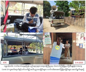 လူမှုဝန်ထမ်း၊ ကယ်ဆယ်ရေးနှင့်ပြန်လည်နေရာချထားရေးဝန်ကြီးဌာန၊ ဘေးအန္တရာယ်ဆိုင်ရာစီမံခန့်ခွဲမှုဦးစီးဌာန၊ သံတောင်ကြီးမြို့နယ်ဦးစီးမှူးရုံးမှ တာဝန်ရှိသူများသည် (၈. ၄.၂၀၂၀)ရက်နေ့ မနက်(၉:၃၀)အချိန်မှနေ့လည် (၁၂:၀၀)အချိန်ထိ သံတောင်ကြီးမြို့နယ်အတွင်းရှိ ရွာကြီးကျေးရွာအုပ်စုတွင်ရှိသော ပျားစခန်းကျေးရွာ၊ သူဌေးကုန်းရွာသစ်၊ မဲဇလီကုန်းကျေးရွာများသို့ COVID -(19) ရောဂါပျံ့နှံ့မှုများမဖြစ်ပွားစေရန်အတွက် အသံချဲ့စက်ဖြင့် အသိပညာပေးဟောပြောခြင်းများ ဆောင်ရွက်ခဲ့ကြောင်း သတင်းရရှိပါသည်။