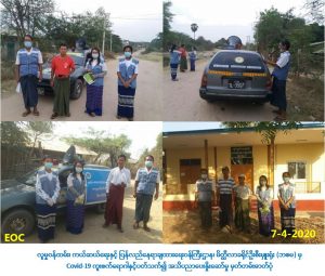 လူမှုဝန်ထမ်း၊ ကယ်ဆယ်ရေးနှင့် ပြန်လည်နေရာချထားရေးဝန်ကြီးဌာန၊ ဘေးအန္တရာယ်ဆိုင်ရာစီမံ ခန့်ခွဲမှုဦးစီးဌာန၊ မိတ္ထီလာခရိုင်ဦးစီးမှူးရုံးမှ တာဝန်ရှိသူများသည် (၇-၄-၂၀၂၀) ရက်နေ့တွင် မိတ္ထီလာ မြို့နယ်အတွင်းရှိ မြှာအုပ်စု၊ကန်တောင်အုပ်စု၊ဇောင်းချမ်းကုန်းအုပ်စုရှိ ကျေးရွာ (၁၈) ရွာအတွင်းရှိ ပြည်သူများအား Covid -19နှင့်ပတ်သက်၍ အသိပညာပေးဟောပြောခြင်းများ ဆောက်ရွက်ခဲ့ပါကြောင်း သတင်းရရှိပါသည်။