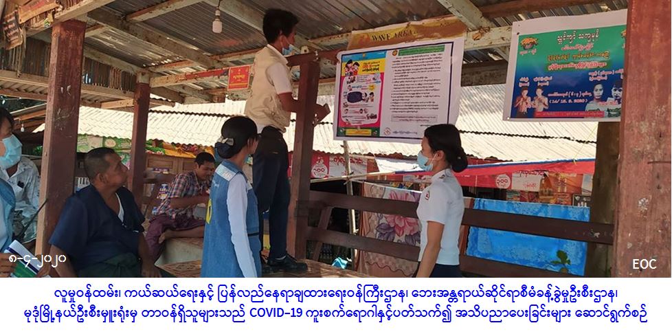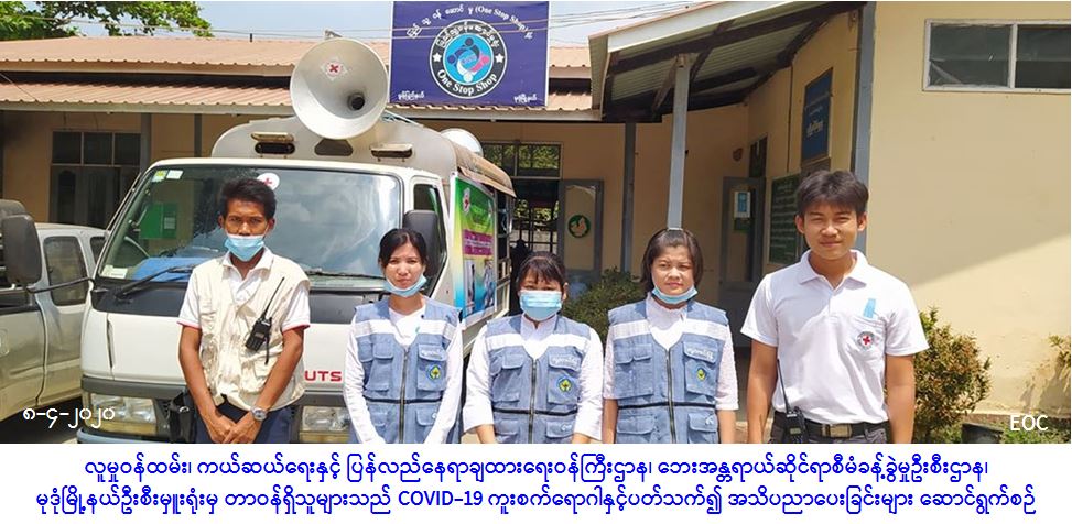 လူမှုဝန်ထမ်း၊ ကယ်ဆယ်ရေးနှင့် ပြန်လည်နေရာချထားရေးဝန်ကြီးဌာန၊ ဘေးအန္တရာယ်ဆိုင်ရာစီမံ ခန့်ခွဲမှုဦးစီးဌာန၊ မုဒုံမြို့နယ်ဦးစီးမှူးရုံးမှ တာဝန်ရှိသူများသည် (၈-၄-၂၀၂၀) ရက်နေ့၊ (၁၀:၀၀) နာရီအချိန်မှ (၁၃:၀၀) နာရီအချိန်ထိ မော်လမြိုင်ခရိုင်၊ မုဒုံမြို့နယ်၊ မြို့မ (၁) ရပ်ကွက်၊ မြို့မ (၂) ရပ်ကွက်၊ မြို့မ (၃) ရပ်ကွက်နှင့် မြို့မ (၄) ရပ်ကွက်အတွင်းရှိ လမ်းဆုံလမ်းခွများနှင့် လူစည်ကားရာနေရာများတွင် COVID-19 ကူးစက်ရောဂါနှင့်ပတ်သက်၍ ဆောင်ရန် ရှောင်ရန် အချက်များအား ပြည်သူသို့ အသိပညာပေး နှိုးဆော်ခြင်းများ လှည့်လည်ဆောင်ရွက်ခဲ့ကြောင်း သတင်းရရှိပါသည်။