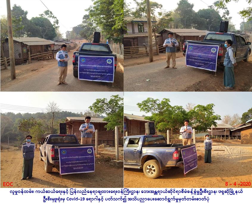 လူမှုဝန်ထမ်း၊ ကယ်ဆယ်ရေးနှင့် ပြန်လည်နေရာချထားရေးဝန်ကြီးဌာန၊ ဘေးအန္တရာယ်ဆိုင်ရာစီမံခန့်ခွဲမှုဦးစီးဌာန၊ ဖရူဆို မြို့နယ်ဦးစီးမှူးရုံးမှ တာဝန်ရှိသူများသည် ဖရူဆိုမြို့နယ်၊ မြို့မကျေးရွာအုပ်စု၊ လောခုခူကျေးရွာ၊ ကေးလျားကျေးရွာအုပ်စု၊ ဒေါဗျားကူးကျေးရွာ၊ ဒေါတကလဲကျေးရွာ၊ ကေးလျားကျေးရွာ၊ ထီဗျားညေကျေးရွာရှိ မိဘပြည်သူများအား COVID-19 ရောဂါ ကူးစက်ပြန့်နှံ့မှုမဖြစ်ပွားစေရေးအတွက် သိရှိလိုက်နာရန်အချက်များအား (၈.၄.၂၀၂၀) ရက်နေ့တွင် အသိပညာဖြန့်ဝေခဲ့ ပါကြောင်း သတင်းရရှိပါသည်။