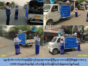 လူမှုဝန်ထမ်း၊ ကယ်ဆယ်ရေးနှင့် ပြန်လည်နေရာချထားရေးဝန်ကြီးဌာန၊ ဘေးအန္တရာယ်ဆိုင်ရာ စီမံခန့်ခွဲမှုဦးစီးဌာန၊ ကလေးခရိုင်ဦးစီးမှူးရုံး မှ တာဝန်ရှိသူများသည် (၈-၄-၂၀၂၀) ရက်နေ့တွင် ကလေးမြို့ပေါ်ရှိ အောင်သစ္စာရပ်ကွက်၊ အောင်မင်္ဂလာရပ်ကွက်၊ အောင်မြေမာန်ရပ်ကွက်၊ ညောင်ပင်သာရပ်ကွက်၊ မင်္ဂလာဥယျာဉ်ရပ်ကွက်၊ ချမ်းမြေ့အောင်စည်ရပ်ကွက်၊ ပင်လုံရပ်ကွက် တို့တွင် Covid-19 ရောဂါကူးစက် ပျံ့နှံမှုများမဖြစ်ပွားစေနိုင်ရန်၊ အများပြည်သူများ အလွယ်တကူ သိရှိလိုက်နာဆောင်ရွက်ရန်၊ အသိပေးဆောင်ရွက်ခြင်းလုပ်ငန်းများ ဆောင်ရွက်ခဲ့ပါကြောင်း သတင်းရရှိပါသည်။