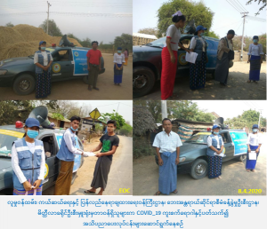 လူမှုဝန်ထမ်း၊ ကယ်ဆယ်ရေးနှင့် ပြန်လည်နေရာချထားရေးဝန်ကြီးဌာန၊ ဘေးအန္တရာယ်ဆိုင်ရာစီမံခန့်ခွဲမှုဦးစီးဌာန၊ မိတ္ထီလာခရိုင်ဦးစီးမှူးရုံးမှတာဝန်ရှိသူများသည် (၈-၄-၂၀၂၀) ရက်နေ့တွင် သာစည်မြို့နယ်အတွင်းရှိ ကုန်းတောင်းအုပ်စု၊ ဘုရားကုန်းအုပ်စု၊ညောင်အိုင်အုပ်စု၊ ဘူးရုံအုပ်စု၊ ညောင်ပင်သာအုပ်စုနှင့် ယင်းမာပင်အုပ်စုရှိ ကျေးရွာ (၁၉) ရွာအတွင်းရှိ ပြည်သူများအား Covid-19 ကူးစက်ရောဂါနှင့်ပတ်သက်၍ အသိပညာပေးကြေငြာခြင်းလုပ်ငန်းများကို ဆောင်ရွက်ခဲ့ပါကြောင်း သတင်းရရှိပါသည်။