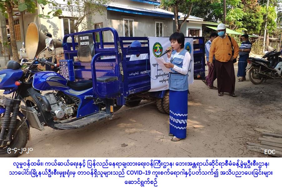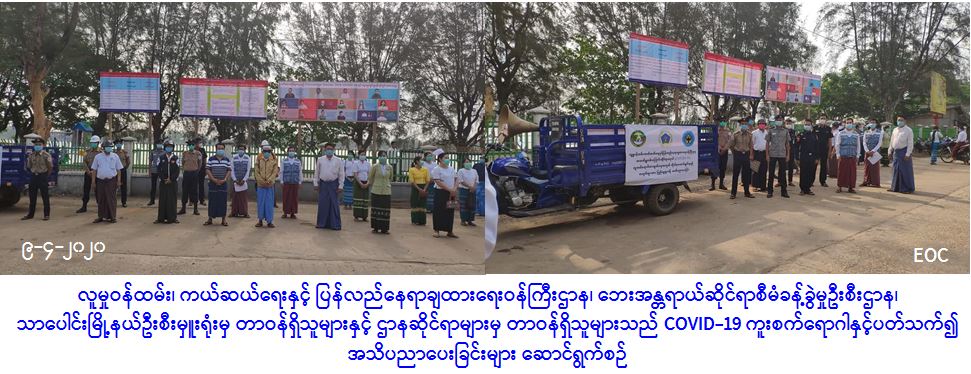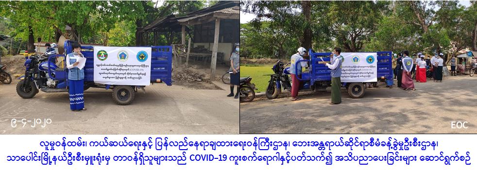 လူမှုဝန်ထမ်း၊ ကယ်ဆယ်ရေးနှင့် ပြန်လည်နေရာချထားရေးဝန်ကြီးဌာန၊ ဘေးအန္တရာယ်ဆိုင်ရာစီမံ ခန့်ခွဲမှုဦးစီးဌာန၊ သာပေါင်းမြို့နယ်ဦးစီးမှူးရုံးမှ တာဝန်ရှိသူများသည် တိုင်းဒေသကြီးလွှတ်တော်ကိုယ်စားလှယ်များ၊ ဌာနဆိုင်ရာများ၊ ရပ်ကွက်အုပ်ချုပ်ရေးမှူးများ၊ ရပ်မိရပ်ဖများနှင့်အတူ (၉-၄-၂၀၂၀) ရက်နေ့၊ (၀၈:၃၀) နာရီအချိန်တွင် ပုသိမ်ခရိုင်၊ သာပေါင်းမြို့နယ်၊ မြို့ပေါ်ရပ်ကွက် (၁)၊ (၂)၊ (၃) တို့၌ လက်တလောနိုင်ငံအသီးသီးတွင် ကူးစက်ပျံ့နှံ့လျက်ရှိသော COVID-19 ကူးစက်ရောဂါနှင့်ပတ်သက်ပြီး ဆောင်ရန်/ရှောင်ရန်များကို ကျေးရွာ/ရပ်ကွက်နေပြည်သူတို့အား အသိပညာပေးခြင်းများ ဆောင်ရွက်ခဲ့ကြောင်း သတင်းရရှိပါသည်။