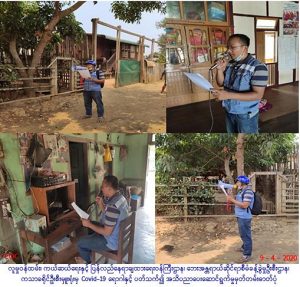 လူမှုဝန်ထမ်း၊ ကယ်ဆယ်ရေးနှင့် ပြန်လည်နေရာချထားရေးဝန်ကြီးဌာန၊ ဘေးအန္တရာယ်ဆိုင်ရာစီမံခန့်ခွဲမှုဦးစီးဌာန၊ ကသာ ခရိုင်ဦးစီးမှူးရုံးမှ တာဝန်ရှိသူများသည် (၉.၄.၂၀၂၀) ရက်နေ့တွင် ကသာမြို့နယ်၊ သံပုရာကျေးရွာအုပ်စု၊ သံပုရာကျေရွာ၊ ညောင်ခြေထောက်ကျေးရွာနှင့် ကျောက်ပုံ ကျေးရွာရှိ ပြည်သူများသို့ Covid-19 ရောဂါကူးစက်ပျံ့နှံ့မှုမဖြစ်ပွားစေရန် သိရှိ လိုက်နာဆောင်ရွက်ရန်များကို (၁၀:၀၀) နာရီအချိန်မှ (၁၃:၀၀) နာရီအချိန်ထိ အသိပေးကြေညာခြင်းလုပ်ငန်းများ ဆောင်ရွက်ခဲ့ ပါကြောင်း သတင်းရရှိပါသည်။