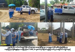 လူမှုဝန်ထမ်း၊ ကယ်ဆယ်ရေးနှင့် ပြန်လည်နေရာချထားရေးဝန်ကြီးဌာန၊ ဘေးအန္တရာယ်ဆိုင်ရာစီမံခန့်ခွဲမှုဉီးစီးဌာန၊ ကချင်ပြည်နယ်ဦးစီးမှူးရုံးမှတာဝန်ရှိသူများသည် (၉-၄-၂၀၂၀) ရက်နေ့တွင် မြစ်ကြီးနားမြို့နယ်ရှိ၊ အေးမြသာယာရပ်ကွက်၊ မော်ဖာင်းရပ်ကွက်၊ ရွှေအိုက်ရပ်ကွက်၊ ရွှေပြည်သာရပ်ကွက်တို့၌ COVID-19 ကူးစက်ရောဂါနှင့်စပ်လျဉ်း၍ ကာကွယ်၊ တားဆီး၊ ထိန်းချုပ်ကုသရေးဆိုင်ရာ ပြည်သူ့ပန်ကြားချက်များကို အသံချဲ့စက်ဖြင့် လှည့်လည်အသိပညာပေးနှိုးဆော်ခြင်း၊ လက်ကမ်းစာစောင်များဖြန့်ဝေပေးခြင်းတို့ ဆောင်ရွက်ခဲ့ပါကြောင်း သတင်းရရှိပါသည်။