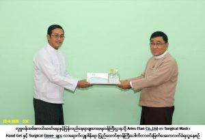 လူမှုဝန်ထမ်း၊ကယ်ဆယ်ရေးနှင့်ပြန်လည်နေရာချထားရေးဝန်ကြီးဌာနသို့ COVID-19 ကမ္ဘာလုံးဆိုင်ရာ ကပ်ရောဂါ ကြိုတင်ကာကွယ်ရန်အတွက် ပြည်သူများကြား အသိပညာပေး လုပ်ငန်းများနှင့် ဝန်ဆောင်မှု လုပ်ငန်းများဆောင်ရွက်ရာတွင် နေပြည်တော်ကောင်စီနယ်မြေ၊ ပြည်နယ်နှင့်တိုင်းဒေသကြီးများရှိ ဝန်ထမ်းများ၊ အဆိုပါဝန်ထမ်းများနှင့်အတူပူးပေါင်း ဆောင်ရွက်လျက်ရှိသော လူမှုအဖွဲ့အစည်းများ အသုံးပြုနိုင်ရန်အတွက် Aries Elan Co.,Ltd က Surgical Mask အခု(၅,၀၀၀) ၊ Hand Gel (၅)လီတာဝင်(၄)ပုံးနှင့် Surgical Glove ဗူး(၂၀) တို့ကို ယနေ့ မွန်းလွဲပိုင်းတွင် လာရောက်ပေးအပ်လှူဒါန်းရာ ပြည်ထောင်စုဝန်ကြီး ဒေါက်တာဝင်းမြတ်အေးက လက်ခံရယူပြီး ဂုဏ်ပြုမှတ်တမ်းလွှာ ပြန်လည်ပေးအပ်ခဲ့ကြောင်း သတင်းရရှိသည်။