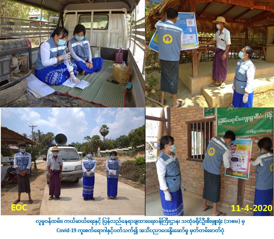 လူမှုဝန်ထမ်း၊ ကယ်ဆယ်ရေးနှင့် ပြန်လည်နေရာချထားရေးဝန်ကြီးဌာန၊ ဘေးအန္တရာယ်ဆိုင်ရာစီမံ ခန့်ခွဲမှုဉီးစီးဌာန၊ သထုံခရိုင်ဦးစီးမှူးရုံးမှ တာဝန်ရှိသူများသည်(၁၁-၄-၂၀၂၀) ရက်နေ့၊ (၁၀:၃၀) နာရီ အချိန်မှ (၁၄:၀၀) နာရီအချိန်ထိ မွန်ပြည်နယ်၊ သထုံခရိုင်၊ သထုံမြို့နယ်၊ ဝင်းစိန်ရွာသစ်ကျေးရွာနှင့် ဝင်းစိန်အလယ်ရွာတို့တွင် COVID-19 ကူးစက်ရောဂါနှင့် ပတ်သက်၍ အသိပညာပေးခြင်းနှင့် ဗီနိုင်းပိုစတာကပ်ခြင်းတို့အား ဆောင်ရွက်ခဲ့ပါကြောင်း သတင်းရရှိပါသည်။