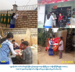လူမှုဝန်ထမ်း၊ ကယ်ဆယ်ရေးနှင့် ပြန်လည်နေရာချထားရေးဝန်ကြီးဌာန၊ ဘေးအန္တရာယ်ဆိုင်ရာစီမံ ခန့်ခွဲမှုဦးစီးဌာန၊ လားရှိုးခရိုင်ဦးစီးမှူးရုံးမှ တာဝန်ရှိသူများသည် (၁၂-၄-၂၀၂၀) ရက်နေ့တွင် ရပ်ကွက်(၇) ၊လားရှိုးမြို့၌ Covid-19 ရောဂါကူးစက်ပျံ့နှံ့မှုမဖြစ်ပွားစေရန် သိရှိလိုက်နာ ဆောင်ရွက်ရမည့် အချက် များကို အသိပေးဟောပြောခြင်း၊ လက်ကမ်းစာစောင်များဖြန့်ဝေခြင်းများကို ဆောင်ရွက်ခဲ့ပါကြောင်း သတင်းရရှိပါသည်။