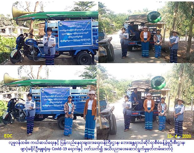 လူမှုဝန်ထမ်း၊ ကယ်ဆယ်ရေးနှင့်ပြန်လည်နေရာချထားရေးဝန်ကြီးဌာန၊ ဘေးအန္တရာယ်ဆိုင်ရာစီမံခန့်ခွဲမှုဦးစီးဌာန၊ ဖျာပုံခရိုင် ဦးစီးမှူးရုံးမှ တာဝန်ရှိသူများသည် (၁၂-၄-၂၀၂၀) ရက်နေ့တွင် ဒေးဒရဲမြို့နယ်၊သဲကုန်းလေးကျေးရွာအုပ်စု၊ညောင်တပင်ကျေးရွာ များ၌ ခရိုင်လူမှုဝန်ထမ်းဦးစီးဌာနမှ တာဝန်ရှိသူတို့နှင့်အတူ COVID-19 ရောဂါကူးစက်ပျံ့နှံ့မှုများ မဖြစ်ပွားစေရေးအတွက် လိုက်နာဆောင်ရွက်ရန် ကျေးရွာရှိပြည်သူများအား အသိပညာပေးခြင်းလုပ်ငန်းများဆောင်ရွက်ခဲ့ပါကြောင်း သတင်းရရှိပါသည်။