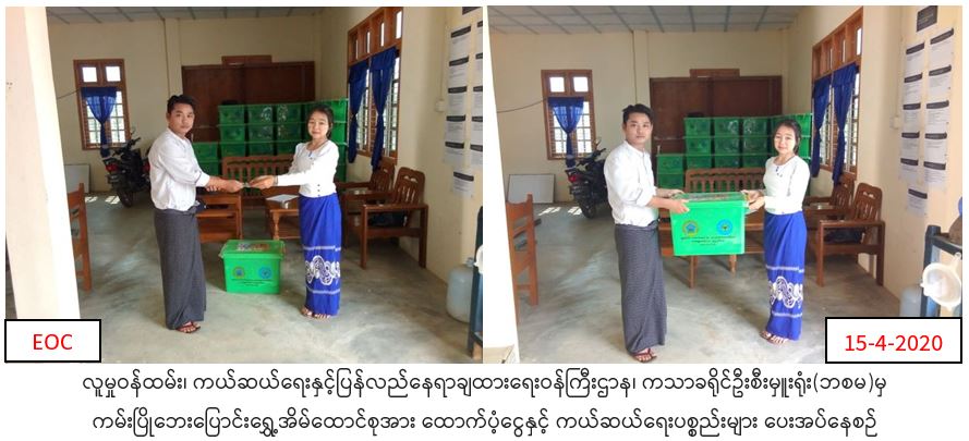 လူမှုဝန်ထမ်း၊ ကယ်ဆယ်ရေးနှင့်ပြန်လည်နေရာချထားရေးဝန်ကြီးဌာန၊ ဘေးအန္တရာယ်ဆိုင်ရာစီမံခန့်ခွဲမှုဦးစီးဌာန၊ ကသာခရိုင်ဦးစီးမှူးရုံးမှ ကသာမြို့နယ်၊ မြေနုကျေးရွာ အုပ်စု၊ မြေနုကျေးရွာတွင် (၁၄.၄.၂၀၂၀)ရက်နေ့၌ ဧရာဝတီမြစ် ရေတိုက်စားမှုကြောင့် ကမ်းပြိုပြောင်း ရွှေ့အိမ်ထောင်စု(၁)စုအတွက် ကယ်ဆယ်ရေးပစ္စည်း(၁၀)မျိုး (၁)အိမ်ထောင်စာ၊ အိမ်ဆောက်ပစ္စည်းဖိုး (၁၀၀၀၀၀ိ/-)နှင့် လူဦးရေ (၅)ဦးအတွက် ဆန်ရိက္ခာဖိုး ထောက်ပံ့ငွေ (၁၀၅၀၀ိ/-)၊ စုစုပေါင်း (၁၁၀၅၀၀ိ/-)အား (၁၅.၄.၂၀၂၀)ရက်နေ့ (၁၄း၃၀)နာရီအချိန်တွင် ဘေးသင့်ပြည်သူထံသို့ ထောက်ပံ့ပေးအပ်ခဲ့ကြောင်း သတင်းရရှိပါသည်။