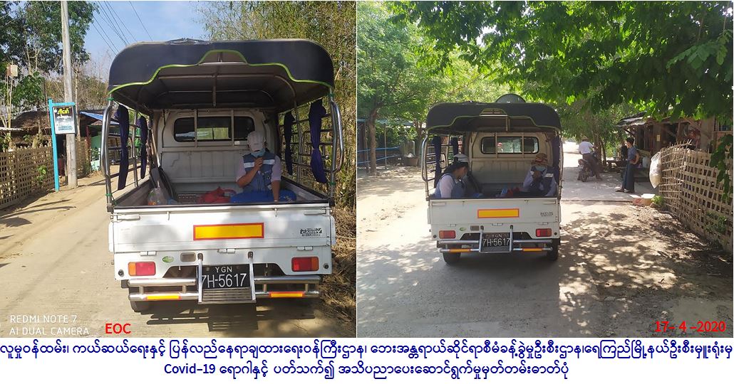 လူမှုဝန်ထမ်း၊ ကယ်ဆယ်ရေးနှင့် ပြန်လည်နေရာချထားရေးဝန်ကြီးဌာန၊ ဘေးအန္တရာယ်ဆိုင်ရာစီမံခန့်ခွဲမှုဦးစီးဌာန၊ ရေကြည် မြို့နယ်ဦးစီးမှူးရုံးမှ တာဝန်ရှိသူများသည် (၁၇.၄.၂၀၂၀) ရက်နေ့တွင် ရေကြည်မြို့နယ် အသုတ်မြို့၊ ကွင်းသုံးဆင့်ကျေးရွာ အုပ်စု၊ ကွင်းသုံးဆင့်ကျေးရွာတွင် (၀၈:၃၀) နာရီမှ (၀၉:၄၅) နာရီအထိလည်းကောင်း၊ ဦးတိုကျေးရွာတွင်(၀၉:၄၅) နာရီမှ (၁၁:၀၀) နာရီအထိလည်းကောင်း၊ ကုန်းတက်ကျေးရွာတွင် (၁၁:၀၀) နာရီမှ (၁၂:၃၀)နာရီ အထိလည်းကောင်း၊ သပြေကွင်း ကျွေးရွာတွင် (၁၃:၃၀) နာရီမှ (၁၄:၄၀) နာရီအထိလည်းကောင်း၊ တောင်ယာကြီးကျေးရွာတွင် (၁၄:၄၀) နာရီမှ (၁၇:၀၀) နာရီ အထိ လက်တလောနိုင်ငံအသီးသီးတွင် ကူးစက်ပြန့်ပွားလျက်ရှိသော COVID-19 ကူးစက် ရောဂါနှင့်ပတ်သက်ပြီး ဆောင်ရန်/ ရှောင်ရန်များကို ကျေးရွာ/ရပ်ကွက်နေပြည်သူတို့အား အသိပညာပေး ဟောပြောဆောင်ရွက်ခဲ့ပါကြောင်း သတင်းရရှိပါသည်။