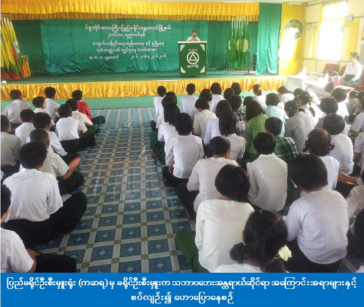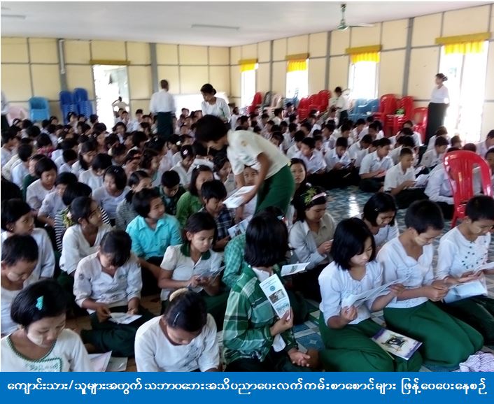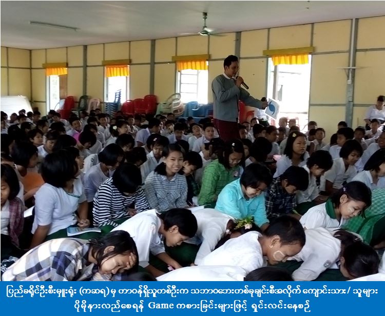 ပဲခူးတိုင်းဒေသကြီး၊ ပြည်ခရိုင်၊ ရွှေတောင်မြို့၊ အခြေခံပညာအထက်တန်းကျောင်း ရတနာခန်းမ၌ (၂၃-၆-၂၀၁၆) ရက်နေ့၊ (၀၉:၃၀) နာရီအချိန်မှ (၁၁:၃၀) နာရီအချိန်ထိ ကျင်းပပြုလုပ်သည့် ကျောင်းသန့်ရှင်းရေး၊ ကျန်းမာရေးနှင့် ဖွံ့ဖြိုးရေး ရက်သတ္တပတ် လှုပ်ရှားမှုအခမ်းအနားတွင် ပြည်ခရိုင်ကယ်ဆယ်ရေးနှင့် ပြန်လည်နေရာချထားရေးဦးစီးဌာနမှ ခရိုင်ဦးစီးမှူးနှင့် တာဝန်ရှိသူများက သဘာဝဘေးအန္တရာယ်ဆိုင်ရာအကြောင်းအရာများနှင့်စပ်လျဉ်း၍ အသိပညာပေးဟောပြောပို့ချခြင်း၊ Game ကစားခြင်းနှင့် ငလျင်ဘေးအန္တရာယ်ဇာတ်တိုက်လှုပ်ရှားမှု video ပြသခြင်းများ ဆောင်ရွက်ခဲ့ပါသည်။ အဆိုပါဟောပြောပွဲသို့ ကျောင်းသား/သူ အင်အား (၃၀၀) ဦးတက်ရောက်ခဲ့ကြပြီး ကျောင်းသား/သူများအတွက် သဘာဝဘေးအသိပညာပေးလက်ကမ်းစာစောင်များ ဖြန့်ဝေပေးခဲ့ကြောင်း သိရှိရပါသည်။