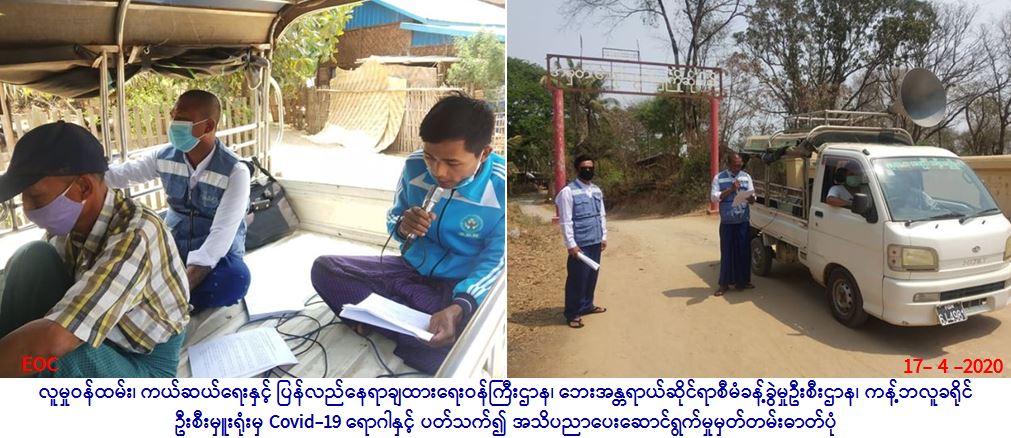 လူမှုဝန်ထမ်း၊ ကယ်ဆယ်ရေးနှင့် ပြန်လည်နေရာချထားရေးဝန်ကြီးဌာန၊ ဘေးအန္တရာယ်ဆိုင်ရာစီမံခန့်ခွဲမှုဦးစီးဌာန၊ ကန့်ဘလူ ခရိုင်ဦးစီးမှူးရုံးမှ တာဝန်ရှိသူများသည် (၁၇-၄-၂၀၂၀) ရက်နေ့တွင် ကန့်ဘလူခရိုင်ဦးစီးမှူးရုံးမှ တာဝန်ရှိသူများသည် ကန့်ဘလူ မြို့နယ်၊ မလယ်ကျေးရွာအုပ်စု၊ မလယ်ကျေးရွာ (အမှတ်-၁၊၂၊၃၊၄၊၅၊၆ ရပ်ကွက်) သို့ သွားရောက်၍ မိဘပြည်သူများအား COVID-19 ရောဂါ ကူးစက်မှုမဖြစ်ပွားစေရေးအတွက် သိရှိပြီးလိုက်နာဆောင်ရွက်ရန် အသိပေးနှိုးဆော်ခြင်းများဆောင်ရွက်ခဲ့ပါကြောင်း သတင်းရရှိပါသည်။