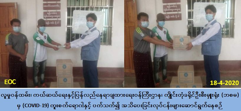 လူမှုဝန်ထမ်း၊ ကယ်ဆယ်ရေးနှင့် ပြန်လည်နေရာချထားရေးဝန်ကြီးဌာန၊ ဘေးအန္တရာယ် ဆိုင်ရာစီမံခန့်ခွဲမှုဦးစီးဌာန၊ ကျိုင်းတုံခရိုင်ဦးစီးမှူးရုံးမှ တာဝန်ရှိသူများသည် မိုင်းခတ်မြို့ နယ်၊ အမှတ်(၁)ရပ်ကွက်၊ မိုင်းကာ(ရှေ့)အုပ်စု၊ ပါခါးလုံကျေးရွာ၊ ဖာလန်ကော် ကျေးရွာအုပ် စု၊ နမ့်တာပီကျေးရွာနှင့်၊ တုံဖကော်ကျေးရွာအုပ်စု၊ နမ့်မွဲကျေးရွာအုပ်စုတို့၌ (၁၇-၄-၂၀၂၀) ရက်နေ့ (၁၆:၃၀) ခန့်အချိန်တွင် ဖြစ်ပွားခဲ့သည့် လေပြင်းတိုက်ခတ်မှုကြောင့် စုစုပေါင်း နေအိမ်(၄) လုံး၊ အိမ်ထောင်စု (၄) စု၊ လူဦးရေ ကျား(၁၄) ဦး၊ မ( ၁၀ ) ဦး စုစုပေါင်း (၂၄) ဦးတို့ လေဘေးသင့်ခဲ့ပြီး ဆုံးရှုံးမှုတန်ဖိုးမှာ (၄၀၀,၀၀၀) ကျပ်ခန့် ဖြစ်ပြီး အဆိုပါ လေဘေး သင့် အိမ်ထောင်စု (၄) စုအတွက် အိမ်ဆောက်ပစ္စည်းဖိုးထောက်ပံ့ငွေ (၄၀၀,၀၀၀) ကျပ်၊ ဆန်ရိက္ခာ (၁) ပတ်စာ ထောက်ပံ့ငွေ (၅၀,၄၀၀) ကျပ်နှင့် ကယ်ဆယ်ရေး ပစ္စည်း(၁၀) မျိုး တို့အား(၁၈-၄-၂၀၂၀)ရက်နေ့ (၁၅:၀၀) နာရီအချိန်တွင် လေဘေးသင့်ပြည်သူများ လက်၀ယ် အရောက်သွားရောက်ထောက်ပံ့ခဲ့ပါကြောင်း သတင်းရရှိပါသည်။