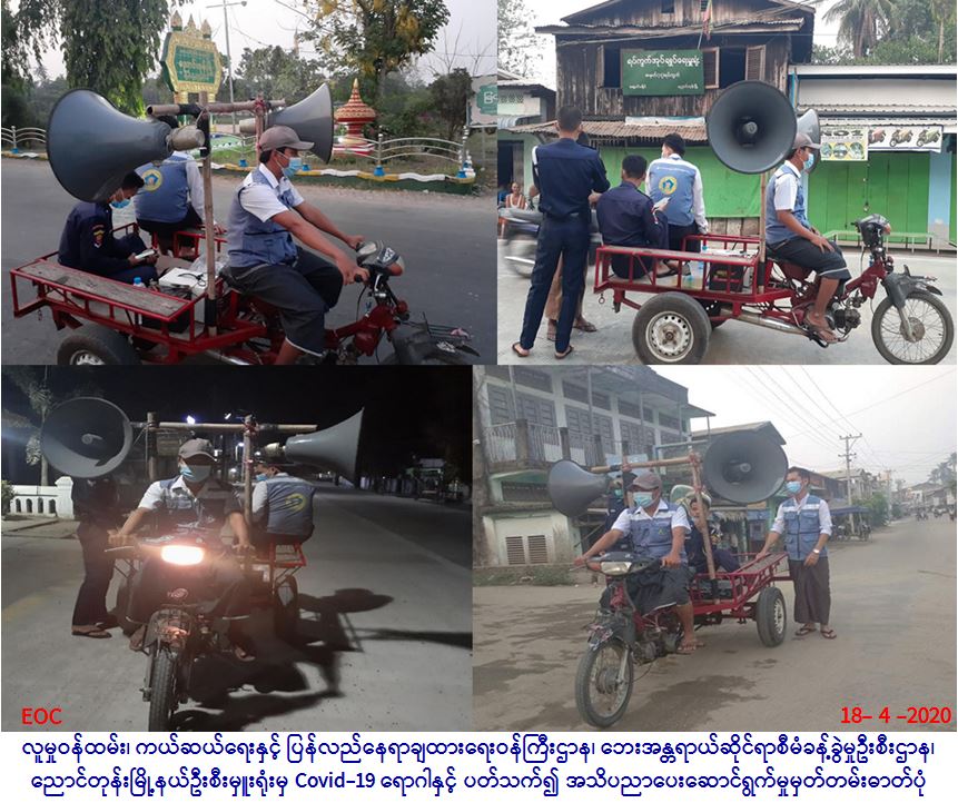 လူမှုဝန်ထမ်း၊ ကယ်ဆယ်ရေးနှင့် ပြန်လည်နေရာချထားရေးဝန်ကြီးဌာန၊ ဘေးအန္တရာယ်ဆိုင်ရာစီမံခန့်ခွဲမှုဦးစီးဌာန၊ ညောင်တုန်း မြို့နယ်ဦးစီးမှူးရုံးမှ တာဝန်ရှိသူများသည် (၁၈.၄.၂၀၂၀) ရက်နေ့တွင် မြို့နယ်မီးသတ်တပ်ဖွဲ့နှင့် ပူးပေါင်း၍ ညောင်တုန်းမြို့၊ မြို့ပေါ်ရပ်ကွက် (၁၀) ရပ်ကွက်၌ Covid-19 ကာကွယ်၊ တားဆီး၊ ထိန်းချုပ်၊ ကုသရေးဆိုင်ရာ ပြည်သူအသိပညာပေး အသံဖိုင် ဖွင့်လှစ်၍ အသိပညာပေးခြင်း၊ မြို့နယ်အထွေထွေအုပ်ချုပ်ရေးဦးစီးဌာန၊ ညောင်တုန်းမြို့နယ်မှထုတ်ပြန်သော ဒေသန္တရ အမိန့် အမှတ် (၂/၂၀၂၀) အား လှည့်လည်ဟောပြောခြင်းများ ဆောင်ရွက်ခဲ့ပါကြောင်း သတင်းရရှိပါသည်။