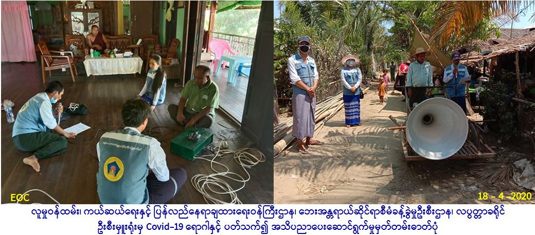 လူမှုဝန်ထမ်း၊ ကယ်ဆယ်ရေးနှင့် ပြန်လည်နေရာချထားရေးဝန်ကြီးဌာန၊ ဘေးအန္တရာယ်ဆိုင်ရာစီမံခန့်ခွဲမှုဦးစီးဌာန၊ လပွတ္တာ ခရိုင်ဦးစီးမှူးရုံးမှ တာဝန်ရှိသူများသည် (၁၈-၄-၂၀၂၀) ရက်နေ့၊ နံနက် (၀၉:၀၀)နာရီမှ (၁၁:၃၀)နာရီအချိန်အထိ လပွတ္တာ မြို့နယ်၊ သနပ်ဖက်ကျေးရွာအုပ်စု၊ သနပ်ဖက်ကျေးရွာ၊ ဂုံညင်းတန်းကျေးရွာနှင့် သာယာကုန်းကျေးရွာများသို့ သွားရောက်၍ COVID-19 နှင့် ပတ်သက်၍ ဆောင်ရန်/ ရှောင်ရန်များအား လိုက်နာဆောင်ရွက်သွားကြရန် လှည့်လည်၍ အသိပညာပေး ကြားခဲ့ပါကြောင်း သတင်းရရှိပါသည်။