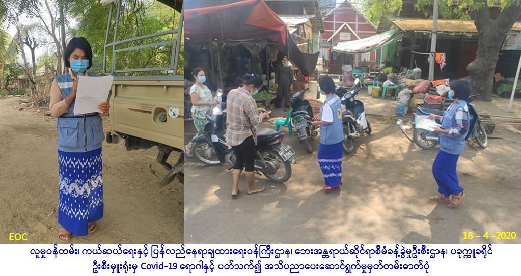 လူမှုဝန်ထမ်း၊ ကယ်ဆယ်ရေးနှင့် ပြန်လည်နေရာချထားရေးဝန်ကြီးဌာန၊ ဘေးအန္တရာယ်ဆိုင်ရာစီမံခန့်ခွဲမှုဉီးစီးဌာန၊ ပခုက္ကူခရိုင် ဦးစီးမှူးရုံးမှ တာဝန်ရှိသူများသည် (၁၈-၄-၂၀၂၀) ရက်နေ့ (၀၈:၀၀)အချိန်မှ (၂၁:ဝဝ)အချိန်ထိပခုက္ကူမြို့ပေါ်ရပ်ကွက်များ၊ ကျွဲတဲကျေးရွာ၊ ရွှေချောင်းကျေးရွာများသို့ COVID -19 ကူးစက်မြန်ရောဂါ ကြိုတင်ကာကွယ်ရေးပြည်သူများသို့ အသိပညာပေး ပန်ကြားချက်များနှင့် မကွေးတိုင်းဒေသကြီးအစိုးရအဖွဲ့၏ ပြည်သူများသို့ပန်ကြားချက်များအား လှည့်လည်အသိပေးခြင်းနှင့် အသိပညာပေးလက်ကမ်းစာစောင်များဖြန့်ဝေခြင်းတို့ကို ဆောင်ရွက်ခဲ့ပါကြောင်း သတင်းရရှိပါသည်။
