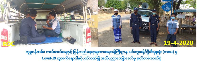 လူမှုဝန်ထမ်း၊ ကယ်ဆယ်ရေးနှင့် ပြန်လည်နေရာချထားရေးဝန်ကြီးဌာန၊ ဘေးအန္တရာယ်ဆိုင်ရာစီမံ ခန့်ခွဲမှုဦးစီးဌာန၊ မင်းဘူးခရိုင်ဦးစီးမှူးရုံးမှ တာဝန်ရှိသူများသည် (၁၉-၄-၂၀၂၀) ရက်နေ့တွင် မင်းဘူး(စကု)မြို့နယ်၊ အေးချမ်းသာယာကျေးရွာ၊ ရွှေရောင်တော်ကျေးရွာ၊ ဖလံရုံကျေးရွာ၊ ကျီးပင်တက် ကျေးရွာနှင့် နန်းတော်ကုန်းကျေးရွာများအတွင်း Covid-19 ရောဂါကူးစက်ပျံ့နှံ့မှု မဖြစ်ပွားစေရန် သိရှိလိုက်နာဆောင်ရွက်ရမည့်အချက်များကို ခရိုင်မီးသတ်ဦးစီးဌာနမှ တာဝန်ရှိသူများ၊ ကျေးရွာ အုပ်ချုပ်ရေးမှူးများ၊ ရပ်မိရပ်ဖများနှင့် ပူးပေါင်း၍ အသိပေးဟောပြောခဲ့ပါကြောင်း သတင်းရရှိပါသည်။