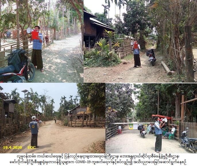 လူမှုဝန်ထမ်း၊ ကယ်ဆယ်ရေးနှင့် ပြန်လည်နေရာချထားရေးဝန်ကြီးဌာန၊ ဘေးအန္တရာယ်ဆိုင်ရာစီမံခန့်ခွဲမှုဦးစီး ဌာန၊ မော်လိုက်ခရိုင်ဦးစီးမှူးရုံးမှ တာဝန်ရှိသူများသည် (၁၉-၄-၂၀၂၀) ရက်နေ့တွင် ရှားပင်ကျေးရွာ၊ တိန်းသာကျေးရွာ၊ အိုးဘိုကျေးရွာ၊ ဆွတ်နန်းကျေးရွာများ၌ COVID-19 ကူးစက်ရောဂါနှင့်စပ်လျဉ်း၍ ဆောင်ရန်/ရှောင်ရန်အချက်များကို လှည့်လည်အသိပေးနှိုးဆော်ခဲ့ပါကြောင်း သတင်းရရှိပါသည်။