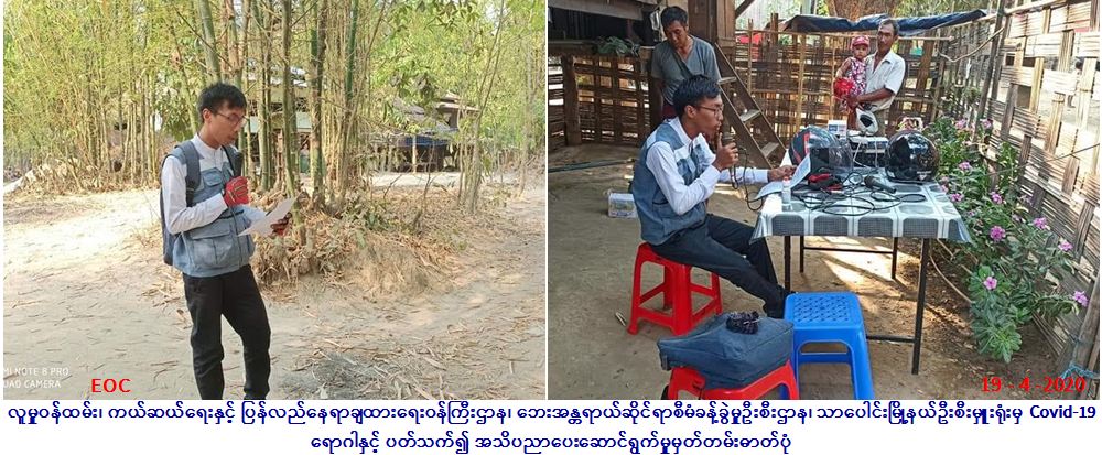 လူမှုဝန်ထမ်း၊ ကယ်ဆယ်ရေးနှင့် ပြန်လည်နေရာချထားရေးဝန်ကြီးဌာန၊ ဘေးအန္တရာယ်ဆိုင်ရာစီမံခန့်ခွဲမှုဉီးစီးဌာန၊ သာပေါင်းမြို့နယ်ဦးစီးမှူးရုံးမှ တာဝန်ရှိသူများသည် ပုသိမ်ခရိုင်၊ သာပေါင်းမြို့နယ်၊ သမင်ကုန်း ကျေးရွာ၌ ကျေးရွာ အုပ်စုအုပ်ချုပ်ရေးမှူး၊ရပ်မိရပ်ဖများ၊ ကျေးရွာရှိတာ၀န်ရှိသူများနှင့်အတူ (၁၉-၄-၂၀၂၀)ရက်နေ့၌ (၁၀:၃၀)နာရီအချိန်တွင် လက်တလောနိုင်ငံအသီးသီးတွင် ကူးစက်ပြန့်ပွားလျက်ရှိသော COVID-19 ကူးစက် ရောဂါနှင့်ပတ်သက်ပြီး ဆောင်ရန်/ ရှောင်ရန်များကို ကျေးရွာ/ရပ်ကွက်နေပြည်သူတို့အား အသိပညာပေးဟောပြော ဆောင်ရွက်ခဲ့ပါကြောင်း သတင်း ရရှိပါသည်။