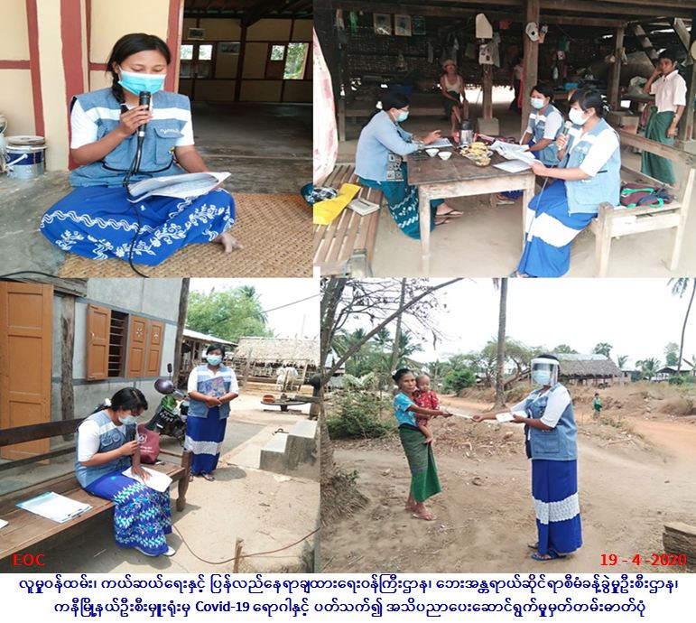 လူမှုဝန်ထမ်း၊ ကယ်ဆယ်ရေးနှင့် ပြန်လည်နေရာချထားရေးဝန်ကြီးဌာန၊ ဘေးအန္တရာယ်ဆိုင်ရာစီမံခန့်ခွဲမှုဉီးစီးဌာန၊ ကနီမြို့နယ်ဦးစီးမှူးရုံးမှ တာဝန်ရှိသူများသည် (၁၉-၄-၂၀၂၀)ရက် နေ့တွင် (၈:၃၀)အချိန်မှ (၁၄:၃၀)အချိန်ထိ ကနီမြို့နယ် အတွင်းရှိ သရက်တောကျေးရွာ ဆင်ဆန်းကျေးရွာ ကင်းတောင်ကျေးရွာ ညောင်သူမြားကျေးရွာ ခိုတွင်းကျေးရွာ များအတွင်း အသံချဲ့စက်ဖြင့် Covid 19 ကာကွယ်ထိန်းချုပ်ရေးဆိုင်ရာ ကျန်းမာရေးအသိပညာပေး လိုက်နာရန် အချက်များအား ပြန်ကြားရေးနှင့်ပြည်သူ့ဆက်ဆံရေးဦးစီးဌာန ကျေးရွာခွဲတာဝန်ခံများနှင့်အတူ အသိပညာပေး ဟောပြောဆွေးနွေးခဲ့ပါကြောင်းနှင့် ပြည်သူသို့ပန်ကြားချက်များအား ဖြန့်ဝေပေးအပ်ခဲ့ပါကြောင်း သတင်းပေးရရှိပါ သည်။