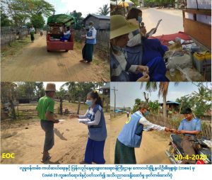 လူမှုဝန်ထမ်း၊ ကယ်ဆယ်ရေးနှင့် ပြန်လည်နေရာချထားရေးဝန်ကြီးဌာန၊ ဘေးအန္တရာယ်ဆိုင်ရာစီမံ ခန့်ခွဲမှုဦးစီးဌာန၊ ကောလင်းမြို့နယ်ဦးစီးမှူးရုံးမှ တာဝန်ရှိသူများသည် (၂၀-၄-၂၀၂၀)တွင် ကောလင်း မြို့နယ်အတွင်းရှိ ကျောက်တန်းရွာ၊ တမံတာရွာ၊ ငါးကြီးအိုင်ရွာ၊ သစ်ဆိမ့်ကုန်းရွာများတွင် Covid-19 နှင့်ပတ်သတ်၍ အများပြည်သူများ အလွယ်တကူသိရှိနိုင်ဆောင်ရွက်ရန်များကို လှည့်လည် ပြန်ကြားခြင်းနှင့်အတူ လေပြင်းဘေးလက်ကမ်းစာစောင်နှင့် လျှပ်စီးနှင့်မိုးကြိုးဘေး လက်ကမ်း စာစောင် များ ဖြန့်ဝေခဲ့ပါကြောင်း သတင်းရရှိပါသည်။