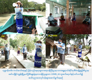 လူမှုဝန်ထမ်း၊ ကယ်ဆယ်ရေးနှင့် ပြန်လည်နေရာချထားရေးဝန်ကြီးဌာန၊ ဘေးအန္တရာယ်ဆိုင်ရာစီမံခန့်ခွဲမှုဦးစီးဌာန၊ မော်လမြိုင်ကျွန်းမြို့နယ်ဦးစီးမှူးရုံးမှ တာဝန်ရှိသူများသည် အထွေထွေအုပ်ချုပ်ရေးဦးစီးဌာန၊ ကျေးလက်ကျန်းမာရေးဌာနတို့နှင့် အတူပူးပေါင်း၍ (၂၀-၄-၂၀၂၀) ရက်နေ့၊ (၀၉း၀၀) နာရီအချိန်မှ (၁၂း၀၀)နာရီအချိန်ထိ မော်လမြိုင်ကျွန်းမြို့နယ်၊ သုံးခွကျေးရွာအုပ်စုအတွင်းရှိ သုံးခွရွာမကျေးရွာ၊ ကြောင်ရှာခွဲကျေးရွာ၊ ရွဲယိုချောင်း ကျေးရွာနှင့် ဆင်ချောင်းဖျားကျေးရွာတို့၌ ဌာနမှပေးပို့ထားသော Covid-19နှင့်ပတ်သက်သည့် ဆောင်ရန်/ ရှောင်ရန်အသံဖိုင်ဖြင့်လည်းကောင်း၊ Hand Speaker ၊ Loud Speaker များဖြင့်လည်းကောင်း လှည့်လည်၍ အသိပညာပေးမှုများဆောင်ရွက်ခဲ့ပါကြောင်း သတင်းရရှိပါသည်။