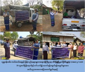 မကွေးတိုင်းဒေသကြီး၊ ဘေးအန္တရာယ်ဆိုင်ရာစီမံခန့်ခွဲမှုဦးစီးဌာန၊ ပခုက္ကူခရိုင်၊ ဆိပ်ဖြူမြို့နယ်ဦးစီးမှူးရုံးမှတာဝန်ရှိသူများသည် (၂၁-၄-၂၀၂၀) ရက်နေ့ နံနက် (၀၈:၀၀) အချိန်မှ (၁၆:၀၀) အချိန်အထိ လူငယ်ရေးရာကော်မတီ၊ ကျေးရွာအုပ်ချုပ်ရေးမှူးများ၊ ရပ်ကျေးစာရေးနှင့်အတူပူးပေါင်း၍ ကဇွန်းမကျေးရွာအုပ်စုရှိ ကဇွန်းမကျေးရွာ၊ ရွာသစ်ကျေးရွာ၊ သရက်ပင်ကျေးရွာ၊ သပြေပင်ကျေးရွာနှင့် ဖလံမကျေးရွာ၊ ကော်တုံကျေးရွာအုပ်စုရှိ ကော်တုံကျေးရွာ၊ သံချောင်းကျေးရွာနှင့် ဖက်တဲကျေးရွာတို့တွင် လှည့်လည်၍ covid 19 ရောဂါနှင့်ပတ်သက်၍ ဆောင်ရန်/ရှောင်ရန် အချက်များအား အသိပညာပေးခြင်းများ ဆောင်ရွက်ခဲ့ပါကြောင်း သိရှိရပါသည်။