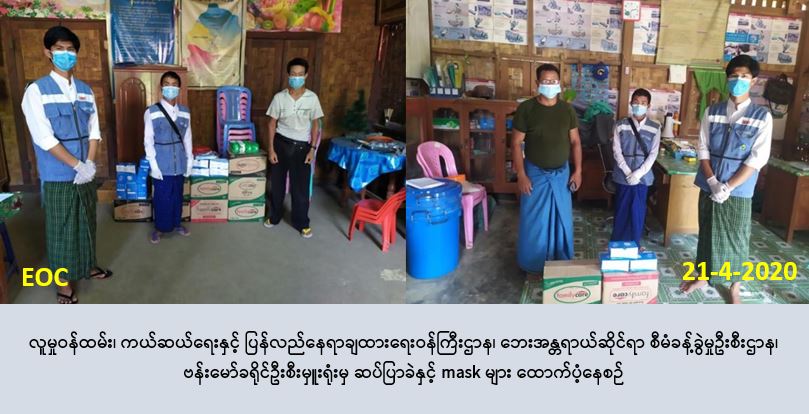 လူမှုဝန်ထမ်း၊ ကယ်ဆယ်ရေးနှင့် ပြန်လည်နေရာချထားရေးဝန်ကြီးဌာန၊ ဘေးအန္တရာယ်ဆိုင်ရာ စီမံခန့်ခွဲမှုဦးစီးဌာန၊ ဗန်းမော်ခရိုင်ဦးစီးမှူးရုံးမှ တာဝန်ရှိသူများသည် (၂၁-၄-၂၀၂၀)ရက်နေ့တွင်