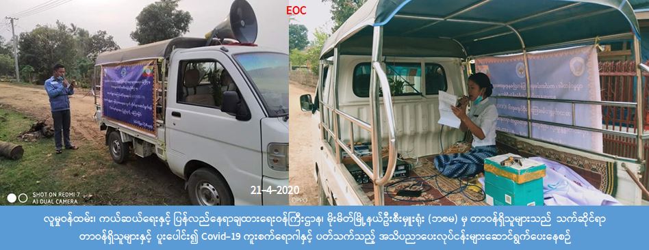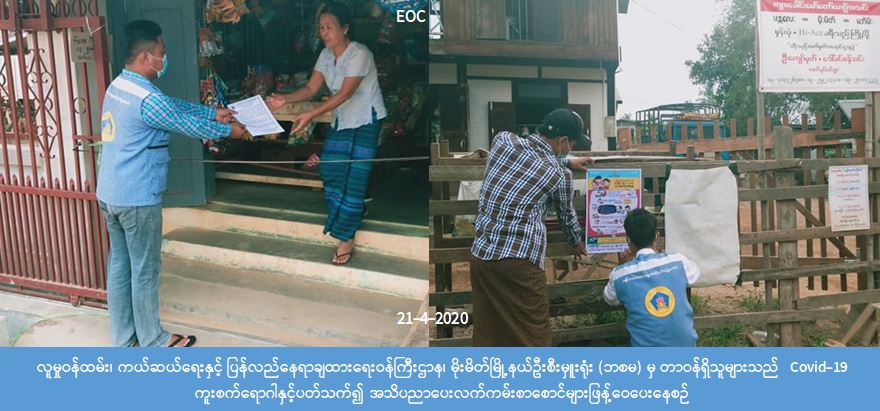 လူမှုဝန်ထမ်း၊ ကယ်ဆယ်ရေးနှင့်ပြန်လည်နေရာချထားရေးဝန်ကြီးဌာန၊ ဘေးအန္တရာယ်ဆိုင်ရာ စီမံခန့် ခွဲမှုဦးစီးဌာန၊ မိုးမိတ်မြို့နယ်ဦးစီးမှူးရုံးမှ တာဝန်ရှိသူများသည် လူမှုဝန်ထမ်းဦးစီးဌာနနှင့် ပူးပေါင်း၍ (၂၁-၄-၂၀၂၀) ရက်နေ့တွင် မိုးမိတ်မြို့နယ်၊ လက်ခုပ်ပင်ကျေးရွာနှင့် နမီကျေးရွာတို့တွင် အသက်ရှူ လမ်းကြောင်းဆိုင်ရာရောဂါ (COVID-19) ကူးစက်ပျံ့နှံ့မှုများမဖြစ်စေရေးအတွက် လိုက်နာဆောင်ရွက် ရန်လိုအပ်ချက်များအား ပြည်သူသို့ ပန်ကြားခြင်းအစီအစဉ်ကို ဆောင်ရွက်ခြင်းနှင့် လေပြင်းဘေးအသိပညာပေးလက်ကမ်းစာစောင်များကိုပါ ဖြန့်ဝေပေးခဲ့ကြောင်း သိရှိရပါသည်။