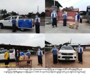 လူမှုဝန်ထမ်း၊ ကယ်ဆယ်ရေးနှင့် ပြန်လည်နေရာချထားရေးဝန်ကြီးဌာန၊ ဘေးအန္တရာယ်ဆိုင်ရာစီမံခန့်ခွဲမှုဦးစီး ဌာန၊ ကချင်ပြည်နယ်ဦးစီးမှူးရုံးမှတာဝန်ရှိသူများသည် (၂၂-၄-၂၀၂၀) ရက်နေ့တွင် မြစ်ကြီးနားမြို့နယ်ရှိ၊ ဂျန်မိုင်ကောင်းနှစ်ခြင်း၊ ဂျန်မိုင်ကောင်း RC ၊ စီတာပူဆွတ်ငိုင်တောင်၊ စီတာပူသီတာအေး IDPs စခန်းများရှိ အိမ်ထောင်စု (၃၉၉) စုအတွက် (၁) အိမ်ထောင်စုလျှင် ဆပ်ပြာ (၂) ခဲနှုန်းနှင့် mask (၂) ခုနှုန်း စုစုပေါင်း ဆပ်ပြာ (၇၉၈) ခဲ၊ mask (၇၉၈) ခုနှင့် ဂျန်မိုင်ကောင်းနှစ်ခြင်းစခန်းအတွက် Non-Contact Infrared Thermometer (၁)ခုကို သွားရောက်ထောက်ပံ့ခဲ့ပြီး COVID – 19 ကူးစက်ရောဂါနှင့်စပ်လျဉ်း၍ ကာကွယ်၊ တားဆီး၊ ထိန်းချုပ်၊ ကုသရေးဆိုင်ရာ ပြည်သူ့ပန်ကြားချက်ကို လှည့်လည်အသိပညာပေးနှိုးဆော်ခဲ့ပါကြောင်း သတင်းရရှိပါသည်။