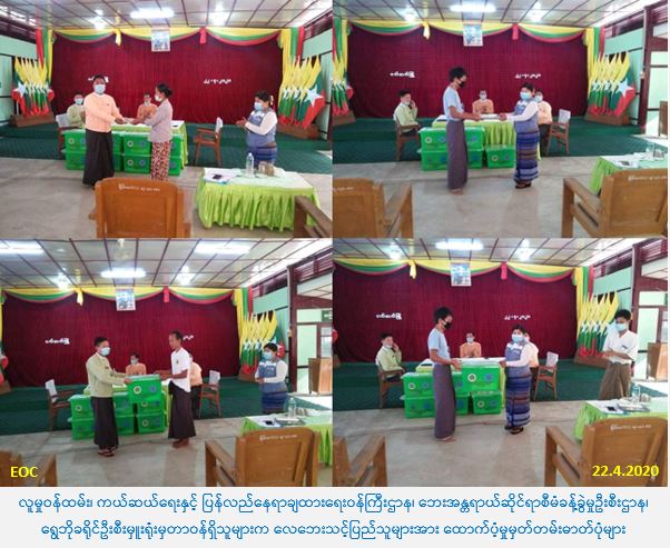 လူမှုဝန်ထမ်း၊ ကယ်ဆယ်ရေးနှင့် ပြန်လည်နေရာချထားရေးဝန်ကြီးဌာန၊ ဘေးအန္တရာယ်ဆိုင်ရာစီမံခန့်ခွဲမှုဦးစီးဌာန၊ ရွေဘိုခရိုင်ဦးစီးမှူးရုံးမှ တာဝန်ရှိသူများသည် ရွေဘိုခရိုင်၊ ဝက်လက်မြို့နယ်ကျေးရွာများတွင် (၂၁-၄-၂၀၂၀) ရက်နေ့၌ လေပြင်းတိုက်ခတ်မှုကြောင့် အမိုးလန်ပျက်စီးခဲ့သည့် အိမ်ထောင်စု(၃၅)စု၊ ပြိုကျပျက်စီးခဲ့သည့် အိမ်ထောင်စု (၉) စု အတွက် ကယ်ဆယ်ရေးပစ္စည်း (၁၀) မျိုး (၉) အိမ်ထောင်စာ၊ ဆန်ရိက္ခာဖိုးထောက်ပံ့ငွေ (၃၇၃,၈၀၀/-) ကျပ်၊ အိမ်ဆောက်ပစ္စည်းဖိုးထောက်ပံ့ငွေ (၁,၉၃၀,၀၀၀/-) ကျပ်၊ စုစုပေါင်းထောက်ပံ့ငွေ (၂,၃၀၃,၈၀၀/-) ကျပ်အား (၂၂-၄-၂၀၂၀) ရက်နေ့ (၁၅း၃၀) အချိန်တွင် မြို့နယ် သဘာဝဘေးအန္တရာယ်ဆိုင်ရာစီမံခန့်ခွဲမှု ကော်မတီအဖွဲ့ဝင်များ၊ လွှတ်တော်ကိုယ်စားလှယ်များနှင့်အတူ ဘေးသင့်ပြည်သူများထံသို့ သွားရောက်ထောက်ပံ့ပေးအပ်ခဲ့ပါကြောင်း သတင်းရရှိပါသည်။