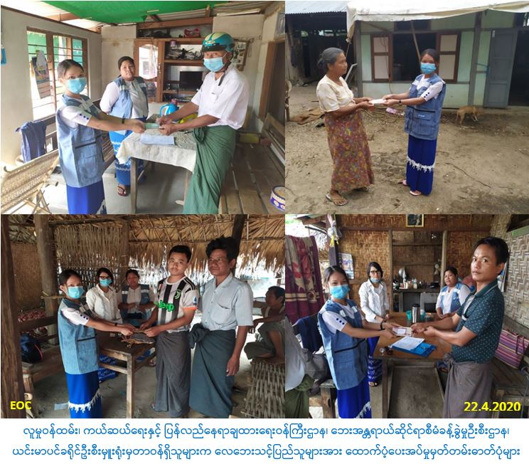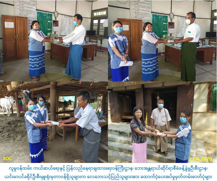 လူမှုဝန်ထမ်း၊ ကယ်ဆယ်ရေးနှင့် ပြန်လည်နေရာချထားရေးဝန်ကြီးဌာန၊ ဘေးအန္တရာယ်ဆိုင်ရာစီမံခန့်ခွဲမှုဦးစီးဌာန၊ ယင်းမာပင်ခရိုင်ဦးစီးမှူးရုံးမှတာဝန်ရှိသူများသည် စစ်ကိုင်းတိုင်းဒေသကြီး၊ ယင်းမာပင်ခရိုင်၊ ပုလဲမြို့နယ်၊ ပုလဲတောင်ပိုင်းရပ်ကွက်၊ ပုလဲမြောက်ပိုင်းရပ်ကွက်၊ လက်တောင်းကြီးကျေးရွာအုပ်စု၊ ရိုးတောင်ကျေးရွာ၊ ရိုးမြောက်ကျေးရွာ၊ ချောင်းကန်ကျေးရွာ၊ သာယာကုန်းကျေးရွာ၊ အလယ်ဘုံကျေးရွာအုပ်စု အလယ်ဘုံကျေးရွာ၊ ရွာသာကျေးရွာအုပ်စု လိန်ကုန်းကျေးရွာ၊ ရွာသာကျေးရွာ၊ ညောင်ကုန်းကျေးရွာအုပ်စု ညောင်ကုန်းကျေးရွာ၊ ကံပေါက်ကျေးရွာအုပ်စု ကံပေါက်ကျေးရွာ၊ မကျီးခွကျေးရွာအုပ်စု ဇောင်ကျမ်းကုန်းကျေးရွာတို့၌ (၂၁-၄-၂၀၂၀) ရက်နေ့ (၁၇:၀၀) အချိန်ခန့်တွင် ဖြစ်ပွားခဲ့သည့် လေပြင်းတိုက်ခတ်မှုကြောင့် အမိုးလန်နေအိမ်စုစုပေါင်း(၈၉) လုံး၊ အိမ်ထောင်စု (၈၉) စုနှင့် လူဦးရေစုစုပေါင်း (၃၇၆) ဦး လေဘေးသင့်ခဲ့ရာ အဆိုပါဘေးသင့်အိမ်ထောင်စု (၈၉) စုအတွက် အိမ်ဆောက်ပစ္စည်းဖိုး ထောက်ပံ့ငွေ (၂,၅၇၀,၀၀ဝ/-)ကျပ်နှင့် လူဦးရေ(၃၇၆)ဦးအတွက် ဆန်ရိက္ခာ (၁) ပတ်စာ ထောက်ပံ့ငွေ (၇၈၉,၆၀ဝ/-) ကျပ်၊ စုစုပေါင်းထောက်ပံ့ငွေ (၃,၃၅၉,၆၀ဝ/-)ကျပ်အား (၂၂-၄-၂၀၂၀) ရက်နေ့တွင် လေဘေးသင့်ပြည်သူများထံသို့ ထောက်ပံ့ပေးအပ်ခဲ့ပါကြောင်း သတင်းရရှိပါသည်။