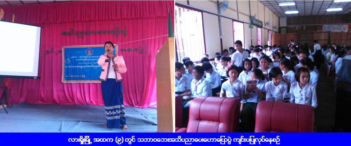 မှ (၁၅:၀၀) နာရီအချိန်ခန့်အထိ လားရှိုးမြို့ အထက (၉) တွင် သဘာဝဘေးအသိပညာပေးဟောပြောပွဲ ကျင်းပပြုလုပ်ခဲ့ပါသည်။ အဆိုပါ ဟောပြောပွဲသို့ လားရှိုးမြို့ အထက (၉) မှ