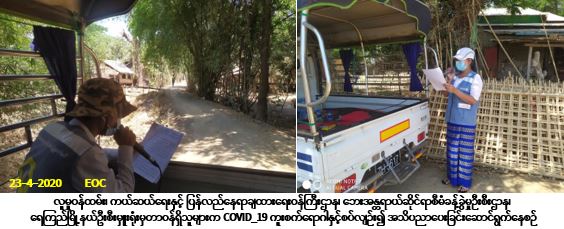 လူမှုဝန်ထမ်း၊ ကယ်ဆယ်ရေးနှင့် ပြန်လည်နေရာချထားရေးဝန်ကြီးဌာန၊ ဘေးအန္တရာယ်ဆိုင်ရာစီမံခန့်ခွဲမှုဉီးစီးဌာန၊ ရေကြည်မြို့နယ်ဦးစီးမှူးရုံးမှတာဝန်ရှိသူများသည် (၂၃-၄-၂၀၂၀) ရက်နေ့၊ (၀၈:၄၀)နာရီအချိန်မှ (၁၀:၀၀)နာရီအချိန်အထိ ရေကြည်မြို့နယ်၊ ငါးသိုင်းချောင်းမြို့၊ ရေနံသာကျေးရွာအုပ်စု၊ ကျွဲလမ်းကျေးရွာ၌လည်းကောင်း၊ (၁၀:၀၀)နာရီအချိန်မှ (၁၁:၃၀)နာရီအချိန်အထိ ကွင်းကြီးကျေးရွာ၌လည်းကောင်း၊ (၁၂:၄၅)နာရီအချိန်မှ (၁၃:၄၅)နာရီအချိန်အထိ စပါယ်ရိုးကျေးရွာ၌လည်းကောင်း၊ (၁၃:၄၅)နာရီအချိန်မှ (၁၅:၀၀)နာရီအချိန်အထိ သပြုပင်ကျေးရွာ၌လည်းကောင်း၊ (၁၅:၀၀)နာရီအချိန်မှ (၁၆:၄၅)နာရီအချိန်အထိ ရေနံသာကျေးရွာ၌လည်းကောင်း COVID-19 ကူးစက်ရောဂါနှင့်စပ်လျဉ်း၍ ဆောင်ရန်/ရှောင်ရန်အချက်များကို အသိပညာပေးနှိုးဆော်ခဲ့ပါကြောင်း သတင်းရရှိပါသည်။