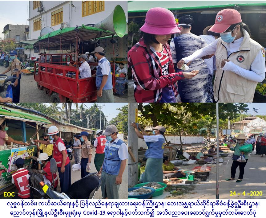 လူမှုဝန်ထမ်း၊ ကယ်ဆယ်ရေးနှင့် ပြန်လည်နေရာချထားရေးဝန်ကြီးဌာန၊ ဘေးအန္တရာယ်ဆိုင်ရာစီမံခန့်ခွဲမှုဦးစီးဌာန၊ ညောင်တုန်း မြို့နယ်ဦးစီးမှူးရုံးမှ တာဝန်ရှိသူများသည် (၂၄.၄.၂၀၂၀)ရက်နေ့တွင် ညောင်တုန်းမြို့နယ် ကြက်ခြေနီတပ်ဖွဲ့နှင့် ပူးပေါင်း၍ ညောင်တုန်းမြို့၊မြို့ပေါ်ရပ်ကွက်များ၌ Covid-19 ကာကွယ်၊ တားဆီး၊ ထိန်းချုပ်၊ ကုသရေးဆိုင်ရာ အသိပညာပေး လုပ်ငန်းများ ဆောင်ရွက်ခဲ့ပါကြောင်း သတင်းရရှိပါသည်။