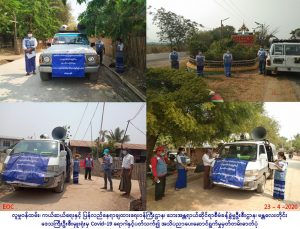 လူမှုဝန်ထမ်း၊ ကယ်ဆယ်ရေးနှင့် ပြန်လည်နေရာချထားရေးဝန်ကြီးဌာန၊ ဘေးအန္တရာယ်ဆိုင်ရာစီမံခန့်ခွဲမှုဦးစီးဌာန၊ မန္တလေး တိုင်းဒေသကြီးဦးစီးမှူးရုံးမှ တာဝန်ရှိသူများသည် (၂၃.၄.၂၀၂၀) ရက်နေ့တွင် စဉ့်ကိုင်မြို့နယ်အတွင်းရှိ ရပ်ကွက်၊ ကျေးရွာအုပ်စု၊ ကျေးရွာများတွင် COVID-19 ကူးစက်ရောဂါနှင့် ပတ်သက်သည့် ဆောင်ရန်/ရှောင်ရန်များကို အသံချဲ့စက်များဖြင့် အသိပညာပေး လုပ်ငန်းများအား အဖွဲ့ (၂) ဖွဲ့ဖြင့် ဆောင်ရွက်ခဲ့ပါကြောင်း သတင်းရရှိပါသည်။