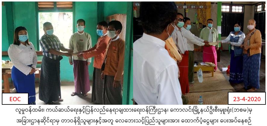 လူမှုဝန်ထမ်း၊ ကယ်ဆယ်ရေးနှင့်ပြန်လည်နေရာချထားရေးဝန်ကြီးဌာန၊ ဘေးအန္တရာယ်ဆိုင်ရာစီမံခန့်ခွဲမှုဦးစီးဌာန၊ ကောလင်းမြို့နယ်ဦးစီမှူးရုံးမှ ကောလင်းမြို့နယ်တွင် (၂၁.၄.၂၀၂၀)ရက်ေန့.(၁၇.၃၀)နာရီအချိန်တွင် လေပြင်းတိုက်ခတ်မှုကြောင့် အမိုးလှန်ပျက်စီးသွားသော ရပ်ကွက်/ကျေးရွာအုပ်စု(၂၀)၊ ကျေးရွာခွဲ(၃၃)မှ ဘုန်းကြီးကျောင်း (၃)ကျောင်း၊ အိမ်ထောင်စု(၆၇)စုအတွက် အိမ်ဆောက်ပစ္စည်းဖိုး(၂,၄၈၀,၀၀၀ိ/-)နှင့် လူဦးရေ(၂၂၇)ဦးအတွက် ဆန်ရိက္ခာ ဖိုး(၅၈၁,၇၀၀ိ/-)၊ စုစုပေါင်း (၃,၀၆၁,၇၀၀ိ/-)အား (၂၃.၄.၂၀၂၀)ရက်နေ့ နေ့လည်(၁၃း၀၀)ချိန်တွင် လွှတ်ေတာ် ကိုယ်စားလှယ်များ နှင့်အတူ ဘေးသင့်ပြည်သူများထံသို့ ထောက်ပံ့ပေးအပ်ခဲ့ကြောင်း သတင်းရရှိပါသည်။