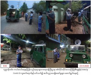 လူမှုဝန်ထမ်း၊ ကယ်ဆယ်ရေးနှင့်ပြန်လည်နေရာချထားရေးဝန်ကြီးဌာန၊ ဘေးအန္တရာယ်ဆိုင်ရာစီမံခန့်ခွဲမှုဦးစီးဌာန၊ စစ်ကိုင်းတိုင်းဒေသကြီးဦးစီးမှူးရုံး မှ တာဝန်ရှိသူများသည် (၂၃-၄-၂၀၂၀)ရက်နေ့တွင် စစ်ကိုင်းတိုင်းဒေသကြီး၊ မုံရွာမြို့နယ်အတွင်းရှိ နတ်လုထိပ်ပန်ရပ်ကွက်၊ မင်းကြီးကုန်းရပ်၊ ညောင်ပင်စောက်ရပ်၊ မုံရွာတောင်ရပ်၊ ရွှေကုန်းရပ်၊ အောင်မင်္ဂလာရပ်၊ အုန်းခြံရပ်၊ အေးခိုရပ်ကွက်နှင့် ဘုရားကြီးရပ်ကွက်များတွင် Covid-19 ရောဂါကူးစက်ပျံ့နှံမှုများမဖြစ်ပွားစေနိုင်ရန်အတွက် အများပြည်သူများ အလွယ်တကူသိရှိ လိုက်နာဆောင်ရွက်ရန်များကို အသိပေးဆောင်ရွက်ခြင်းလုပ်ငန်းများကို ဆောင်ရွက်ခဲ့ပါကြောင်း သတင်းရရှိပါသည်။