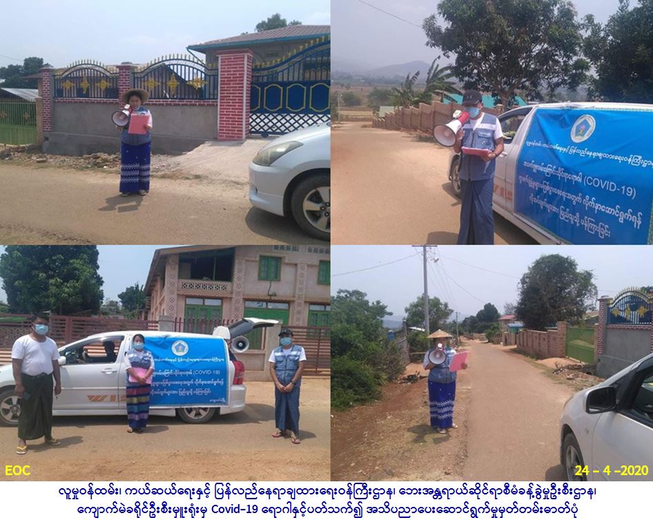 လူမှုဝန်ထမ်း၊ ကယ်ဆယ်ရေးနှင့် ပြန်လည်နေရာချထားရေးဝန်ကြီးဌာန၊ ဘေးအန္တရာယ်ဆိုင်ရာစီမံခန့်ခွဲမှုဦးစီးဌာန၊ ကျောက်မဲ ခရိုင်ဦးစီးမှူးရုံးမှ တာဝန်ရှိသူများသည် (၂၄-၄-၂၀၂၀)ရက်နေ့တွင် ကျောက်မဲမြို့နယ်အတွင်းရှိ နားပုံကျေးရွာ၊ နားပြိန်းကျေးရွာ နှင့် ပုံဝိုးကျေးရွာများတွင် COVID-19 ရောဂါကူးစက်ပျံ့နှံမှုများမဖြစ်ပွားစေရန်အတွက် ဆောင်ရန်၊ ရှောင်ရန်များကို ဗမာ၊ ရှမ်းဘာသာစကားများဖြင့် အသိပေးဟောပြောဆောင်ရွက်ခဲ့ပါကြောင်း သတင်းရရှိပါသည်။