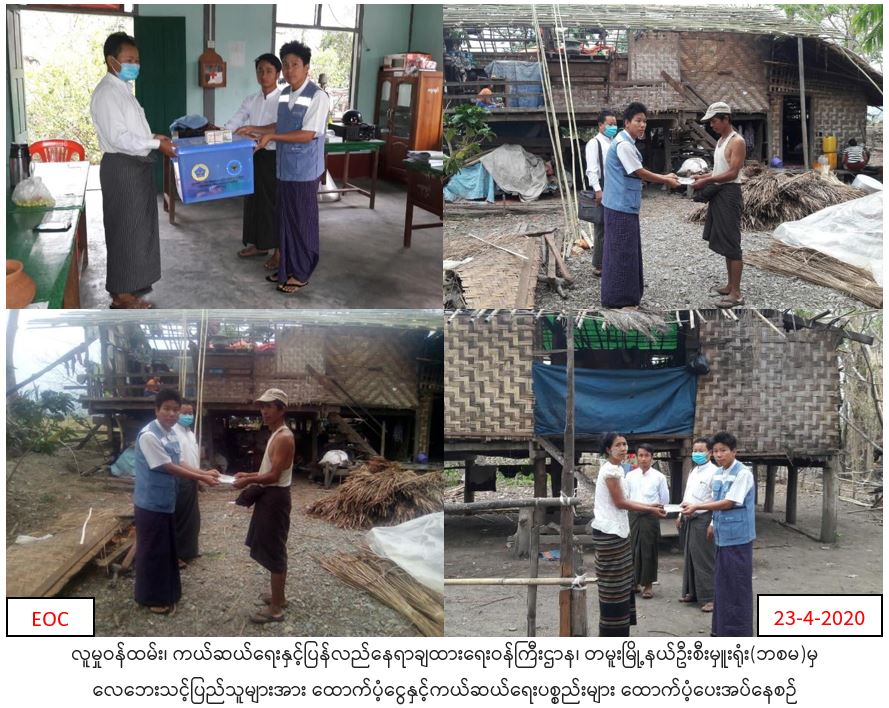 လူမှုဝန်ထမ်း၊ ကယ်ဆယ်ရေးနှင့်ပြန်လည်နေရာချထားရေးဝန်ကြီးဌာန၊ ဘေးအန္တရာယ်ဆိုင်ရာစီမံခန့်ခွဲမှုဦးစီးဌာန၊ တမူးမြို့နယ်ဦးစီးမှူးရုံးမှ (၂၁-၄-၂၀၂၀)ရက်နေ့ လေပြင်းတိုက်ခတ်မှုကြောင့် တမူးမြို့နယ်အတွင်း ပျက်စီးဆုံးရှုံးခဲ့ရသော ပြိုလဲအိမ်ခြေ(၂)လုံး၊ အမိုးလန် အိမ်ခြေ (၆၅)လုံးတို့မှ လူဦးရေ (၃၆၅)ဦးတို့အတွက် ဆန်ရိက္ခာဖိုး(၇၄၇,၆၀၀ိ/-)၊ အိမ်ဆောက်ပစ္စည်းဖိုး (၂,၂၂၅,၀၀၀ိ/-) စုစုပေါင်း (၂,၉၇၂,၆၀၀ိ/-)နှင့် ကယ်ဆယ်ရေးပစ္စည်း(၁၀)မျိုး (၂)အိမ်ထောင်စာတို့အား (၂၃-၄-၂၀၂၀)ရက်နေ့တွင် ထောက်ပံ့ပေးအပ်ခဲ့ကြောင်း သတင်းရရှိပါသည်။