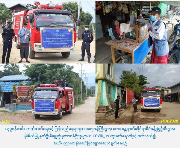 လူမှုဝန်ထမ်း၊ ကယ်ဆယ်ရေးနှင့် ပြန်လည်နေရာချထားရေးဝန်ကြီးဌာန၊ ဘေးအန္တရာယ်ဆိုင်ရာစီမံခန့်ခွဲမှုဦးစီးဌာန၊ မိုးမိတ်မြို့နယ်ဦးစီးမှူးရုံးမှတာဝန်ရှိသူများသည် မီးသတ်ဦးစီးဌာန၊ လူမှုဝန်ထမ်းဦးစီးဌာနတို့နှင့် ပူးပေါင်း၍ (၂၄-၄-၂၀၂၀) ရက်နေ့တွင် မိုးမိတ်မြို့ပေါ်ရပ်ကွက်များဖြစ်သည့် ဟော်နန်းရပ်ကွက်၊ တောင်ပိုင်းရပ်ကွက်၊ မြောက်ပိုင်းရပ်ကွက်နှင့် လက်ခုပ်တန်းရပ်ကွက်တို့တွင် အသက်ရှူလမ်းကြောင်းဆိုင်ရာရောဂါ (COVID-19) ကူးစက်ပျံ့နှံ့မှုများမဖြစ်ပွားစေရေးအတွက် လိုက်နာဆောင်ရွက်ရမည့်အချက်များအား ပြည်သူသို့ပန်ကြားခြင်းအစီအစဉ်ကိုဆောင်ရွက်ခြင်းနှင့် ဈေးဆိုင်များလိုက်နာရန် အသိပညာ ပေးလက်ကမ်းစာစောင်များကိုလည်း ဖြန့်ဝေပေးခဲ့ပါကြောင်း သတင်းရရှိပါသည်။